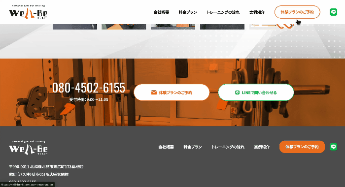 Well-Be北見様のホームページ制作において、私たちが特にこだわった点は、「ダイエットや体作りに対する敷居の低さ」と、「トレーナーが理学療法士である点での信頼性」を高めるデザインを意識したことです。