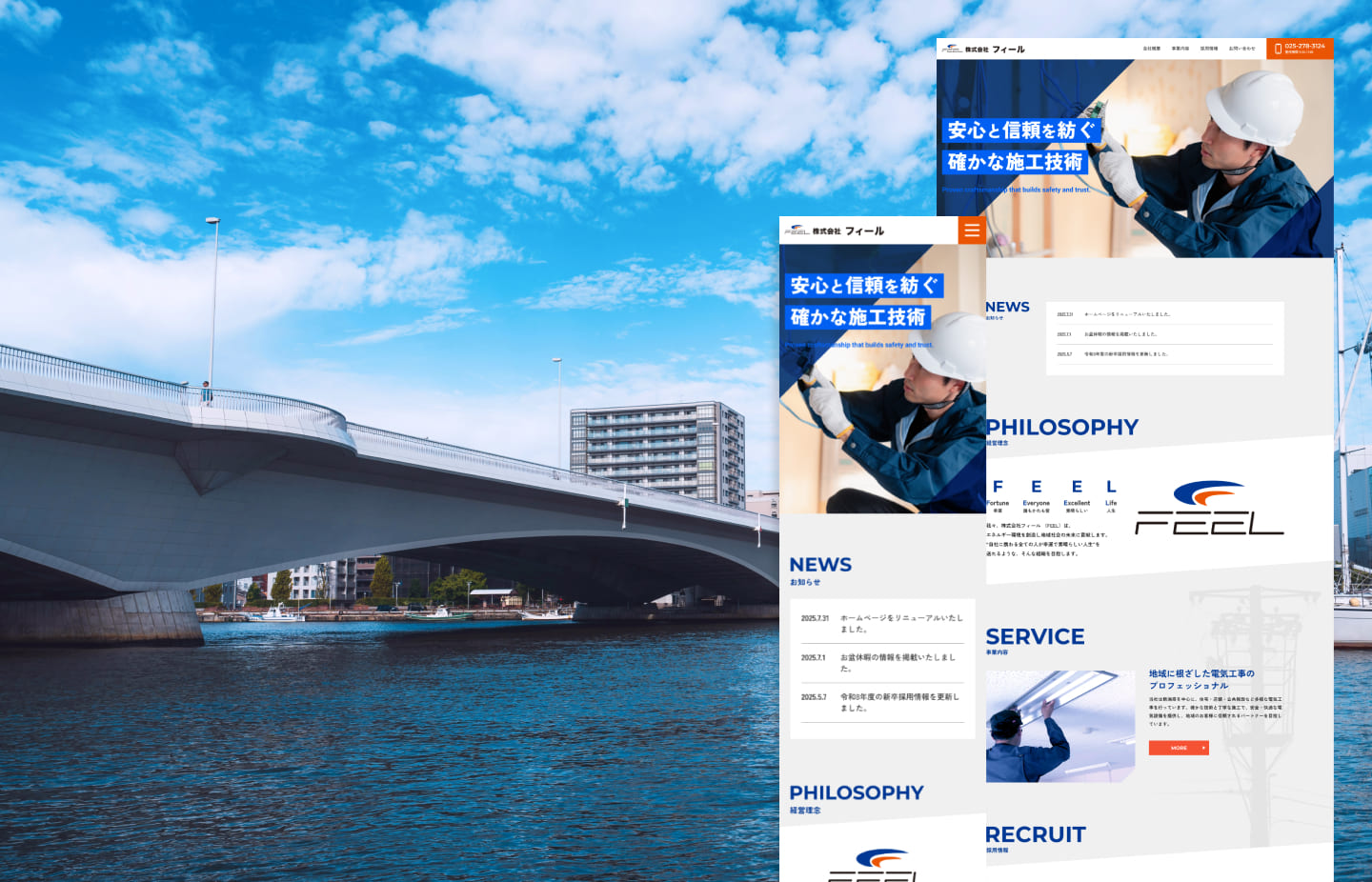 新潟県新潟市の総合電気工事会社「株式会社フィール様」のホームページのリニューアル制作を行いました。